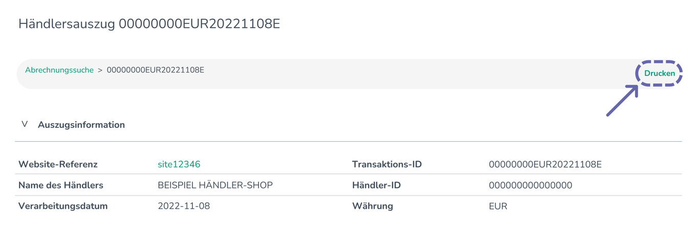 | Händler-ID | Händler-ID (MID), die mit dem Kontoauszug verknüpft ist. |