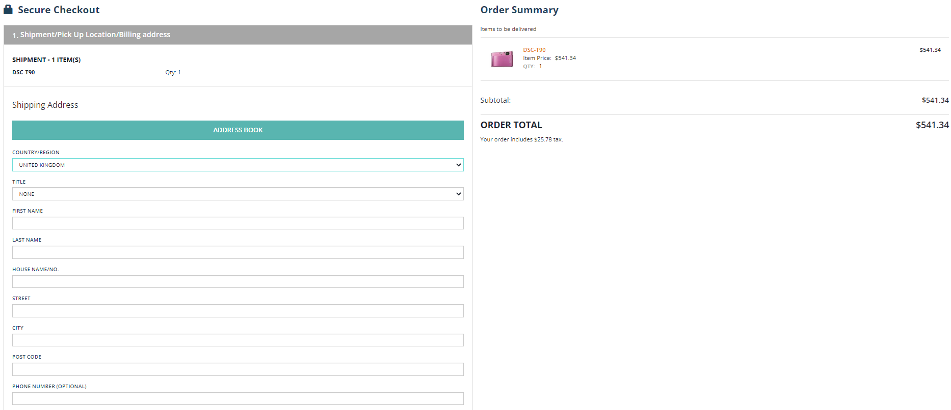 Add a product to your cart and select “CHECK OUT”.