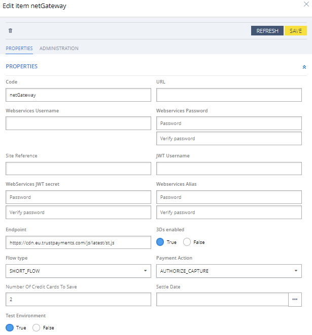 Once you have selected the endpoint in the “Trust Payments Gateway” drop-down, double-click on "netGateway" and you will be displayed a configuration form: