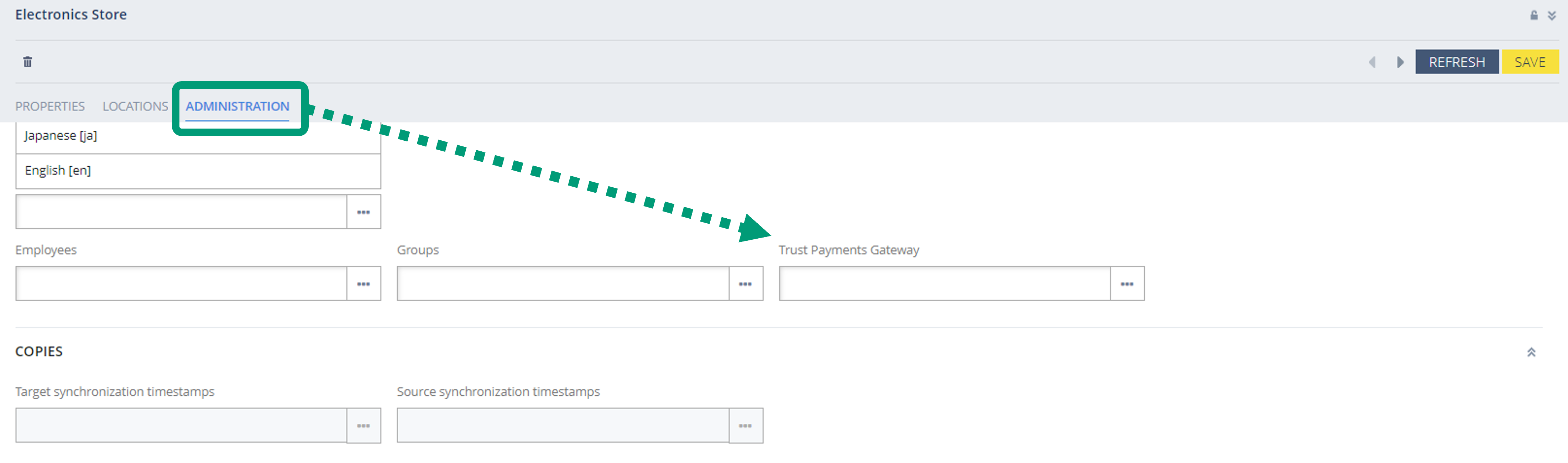 Then select the “ADMINISTRATION” tab and scroll down to find the field “Trust Payments Gateway”. Select the drop-down and choose “netGateway”.