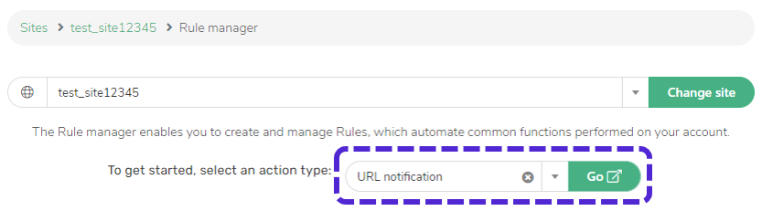 4. Select the action type “URL notification” from the drop-down and your browser will be redirected.