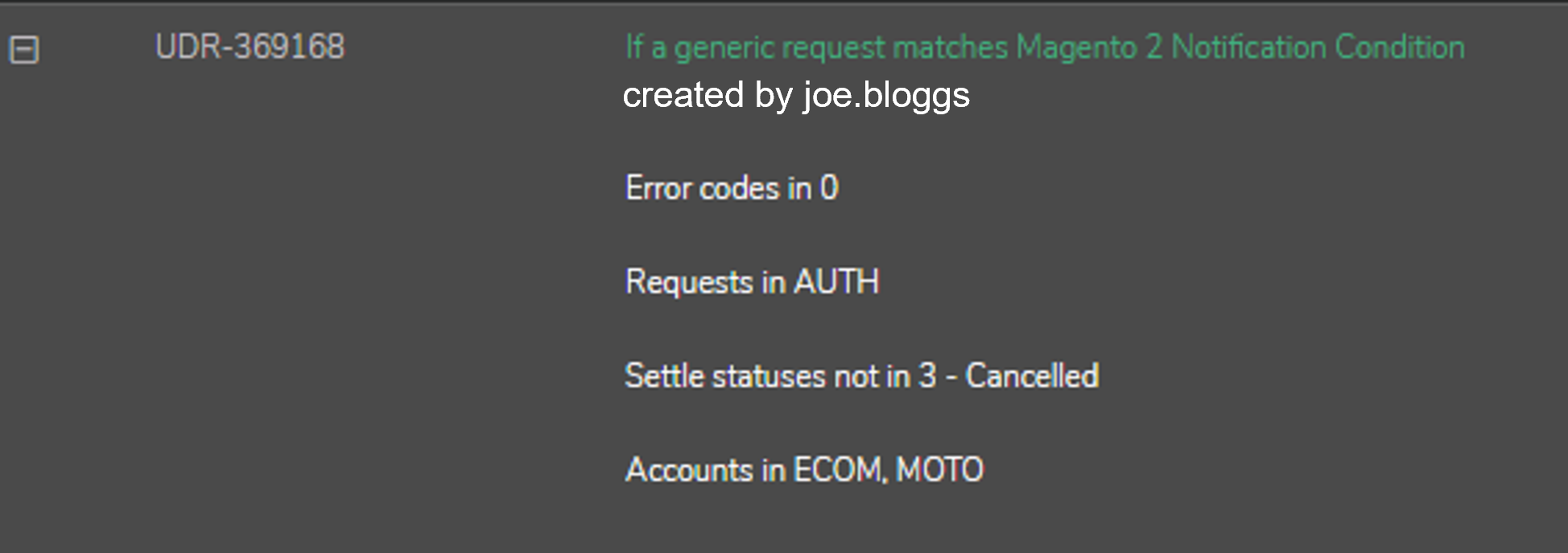 Once saved, the condition will look like this in the Rule manager: