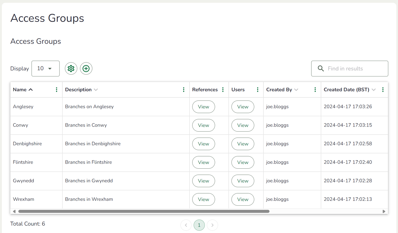 This page contains a list of all access groups you have permission to view. The following details are visible for each access group: