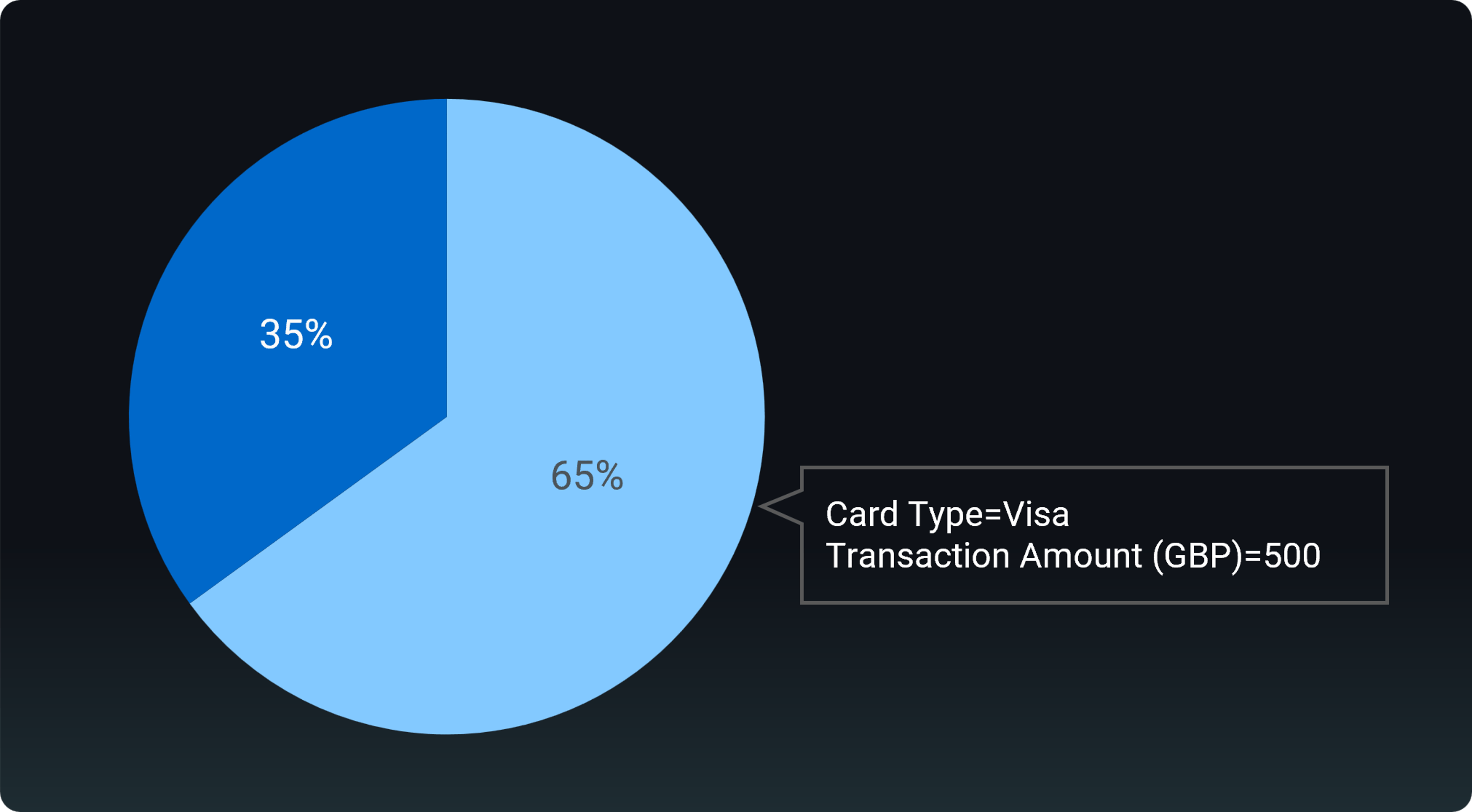 In der Guest Insights-Anwendung werden oft weitere Details angezeigt, wenn Sie mit dem Mauszeiger über die angezeigten Bilder fahren. Alternativ können Sie das gleiche Ergebnis auf dem Handy erzielen, indem Sie stattdessen auf das Bildmaterial tippen. Wenn Sie im folgenden Beispiel den Mauszeiger über einen Datenpunkt im Tortendiagramm bewegen, wird eine QuickInfo mit dem entsprechenden Betrag angezeigt.