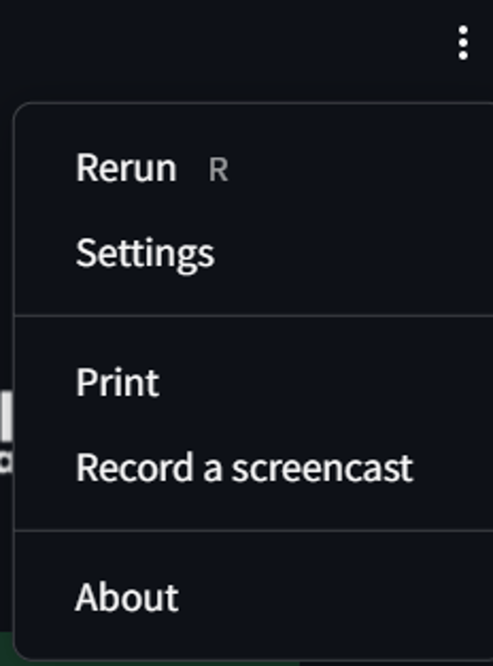 Wählen Sie das Symbol oben rechts, um auf die folgenden Optionen zuzugreifen: