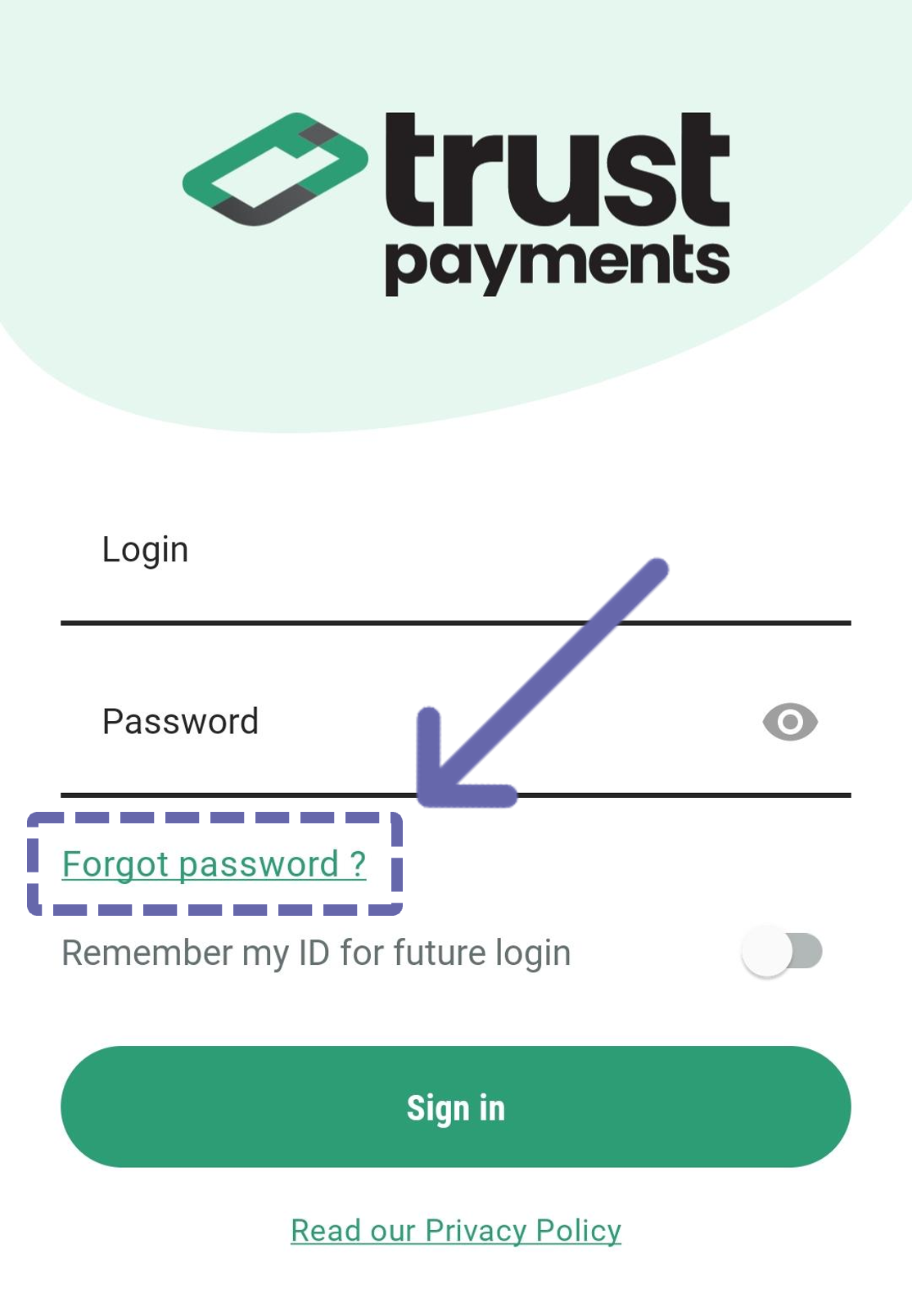Tippen Sie auf der Anmeldeseite der SoftPOS-App auf"Passwort vergessen?" und folgen Sie den Anweisungen auf dem Bildschirm.