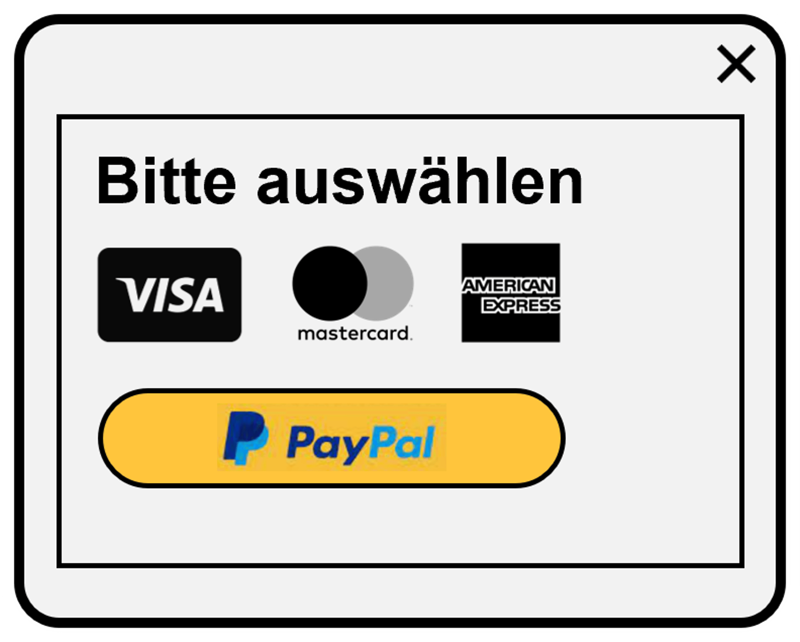 PayPal wird neben Kredit-/Debitkarten als zusätzliche Zahlungsmethode in Ihrer Kasse angezeigt.