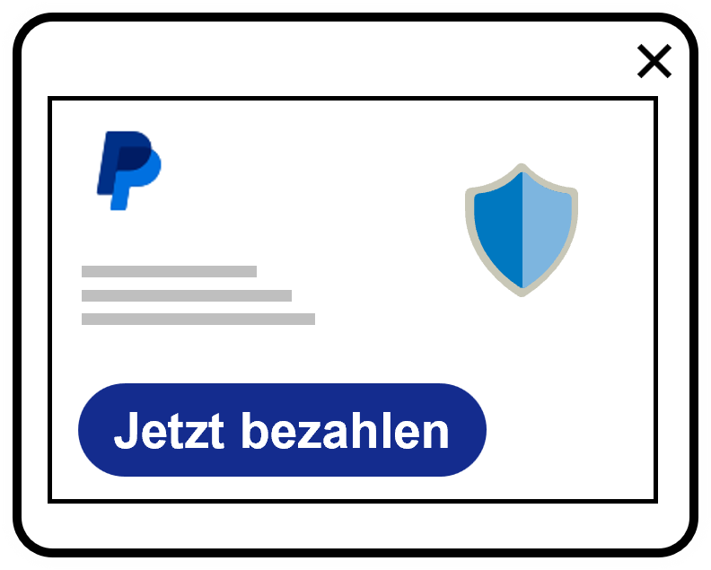 Kunden wählen die Option "Direkt zu PayPal" auf Ihrer Website und werden zu den Servern von PayPal weitergeleitet.