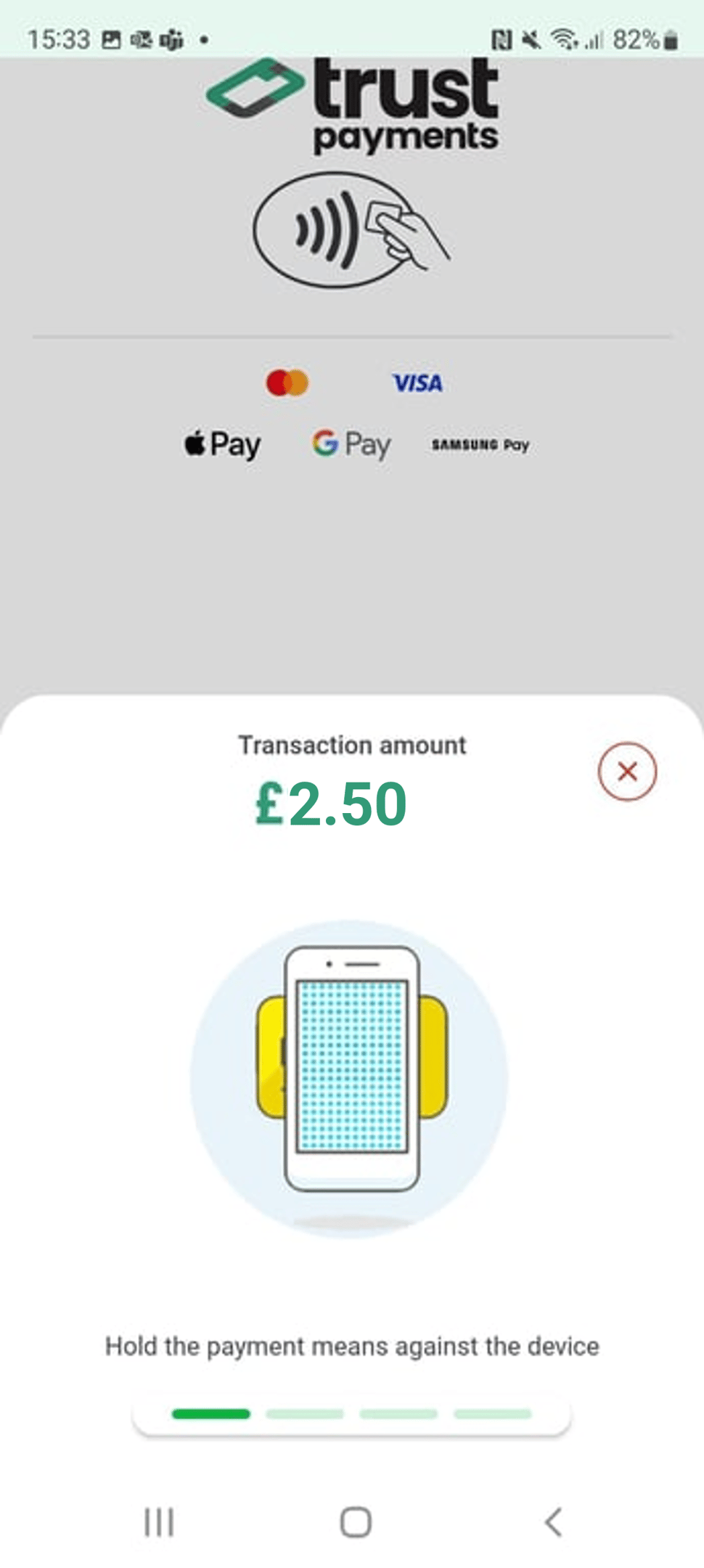 Legen Sie die Option zum kontaktlosen Bezahlen an den NFC-Punkt des Geräts.