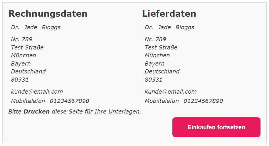 Schaltfläche "Einkaufen fortsetzen"