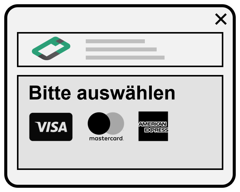 Der Kunde wird zu unseren Servern weitergeleitet, wo er eine der in Ihrem Konto freigeschalteten Zahlungsarten auswählen kann.