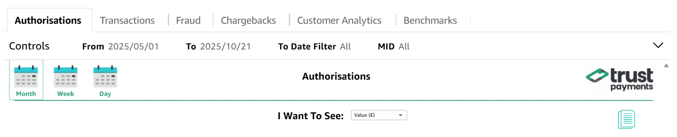 - Wert (£) - Alle Diagramme und visuellen Darstellungen zeigen Geldwerteund helfen Ihnen bei der Analyse von Einnahmen und Transaktionsbeträgen.