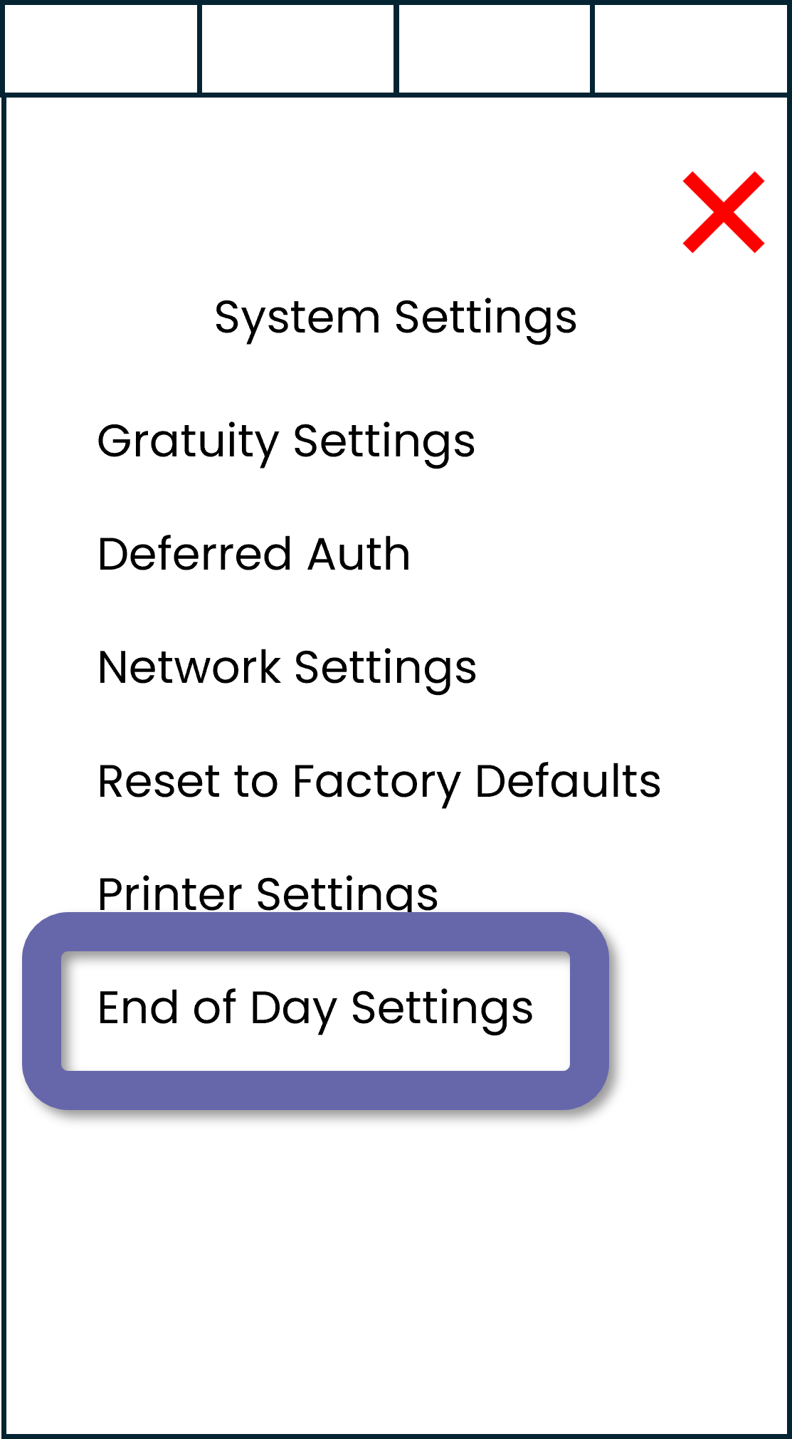 Wählen Sie im Menü „Systemeinstellungen“ die Option„Tagesabschluss-Einstellungen“ aus.