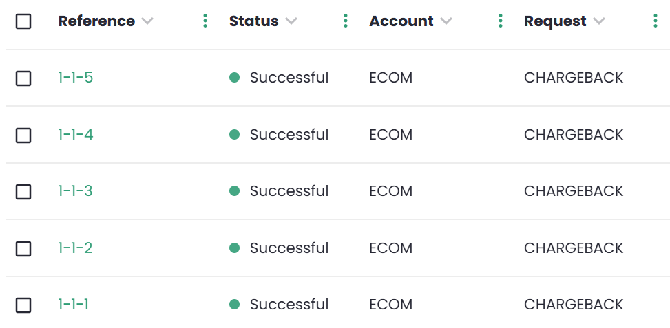 Identifiziert die Rückbuchung eindeutig auf der TRU Connect Tor. Wählen Sie die Referenz aus, um die Transaktionsdetails anzuzeigen. So können Sie weitere Details zur jeweiligen Rückbuchung einsehen. Erfahren Sie mehr über die Transaktionsdetails. |