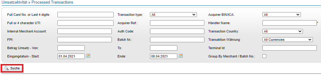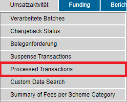 - Auf OmniPay RAM zu Umsatzaktvität > Processed Transactions navigieren.