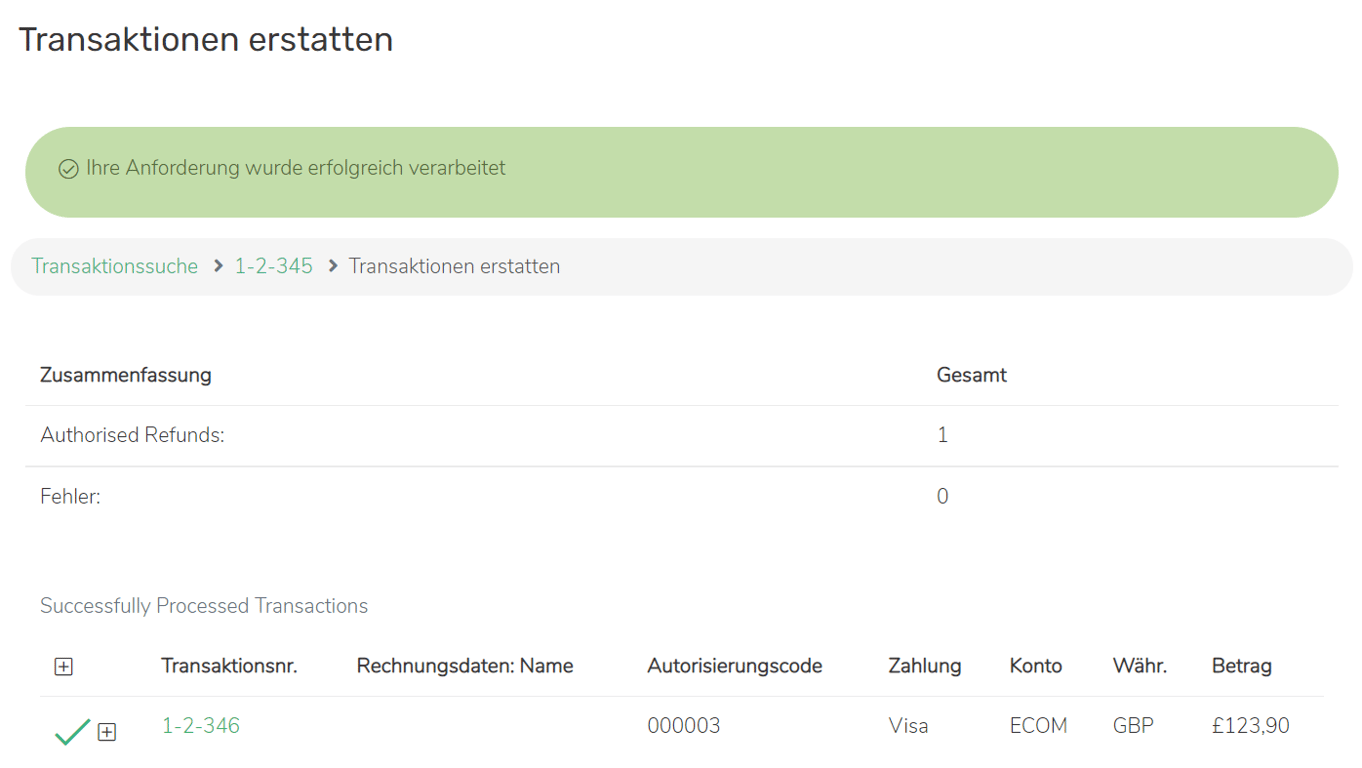 - Sie können keine vollständige Erstattung vornehmen, wenn für eine bestimmte Transaktion bereits eine vollständige oder teilweise Erstattung erfolgt ist.