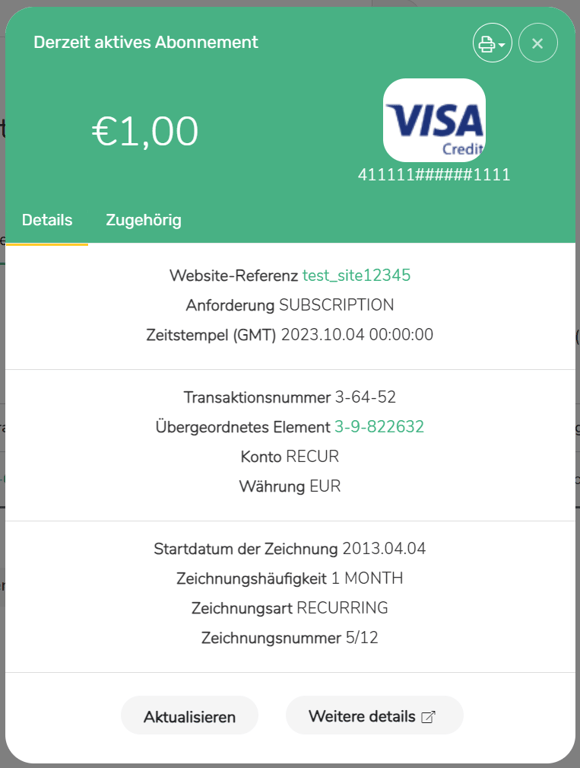 Anzeige verwandter Transaktionen bei der Anzeige von Abonnementdetails