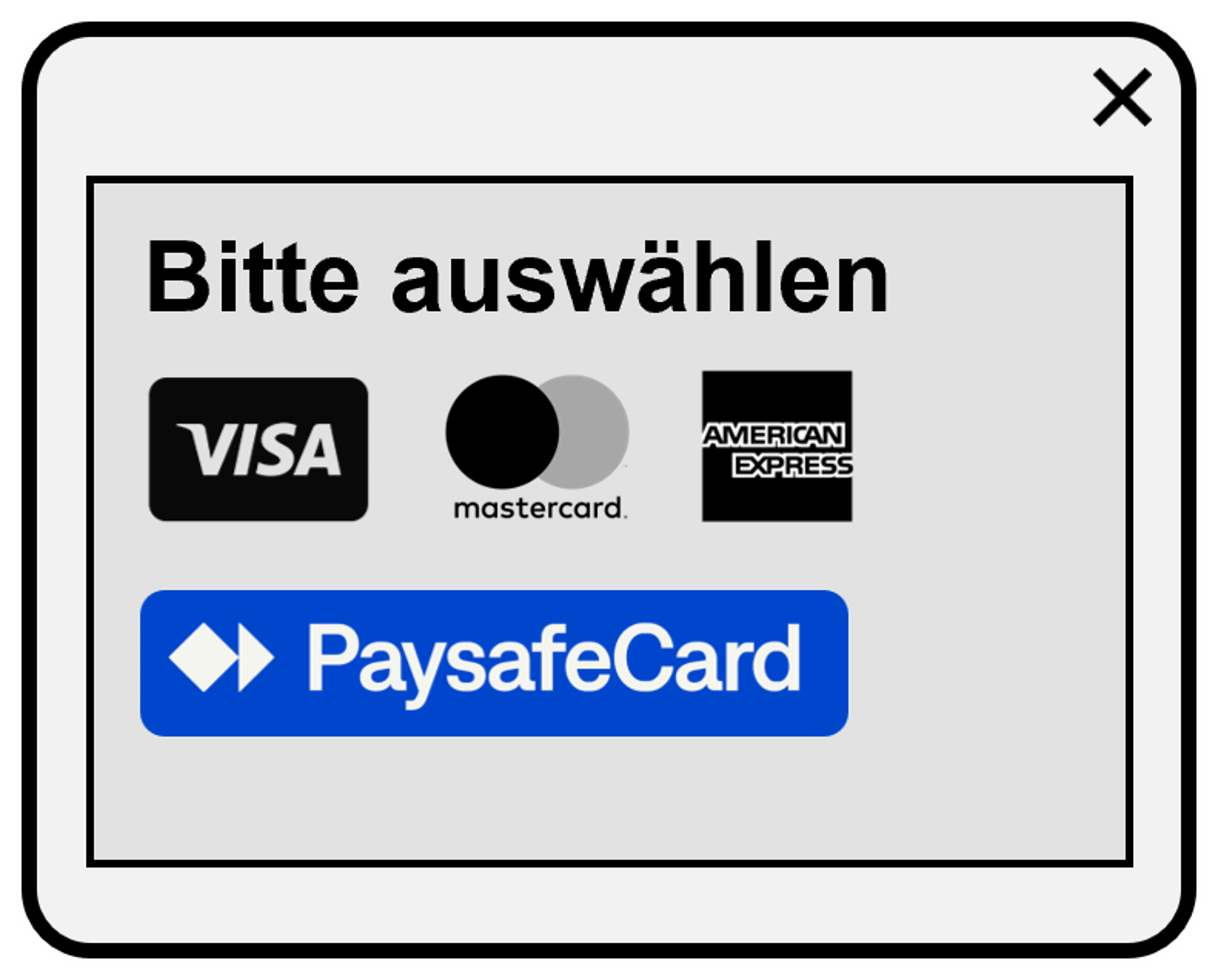 - Während des Bezahlvorgangs bietet Ihre Website PaysafeCard als Zahlungsmethode an.