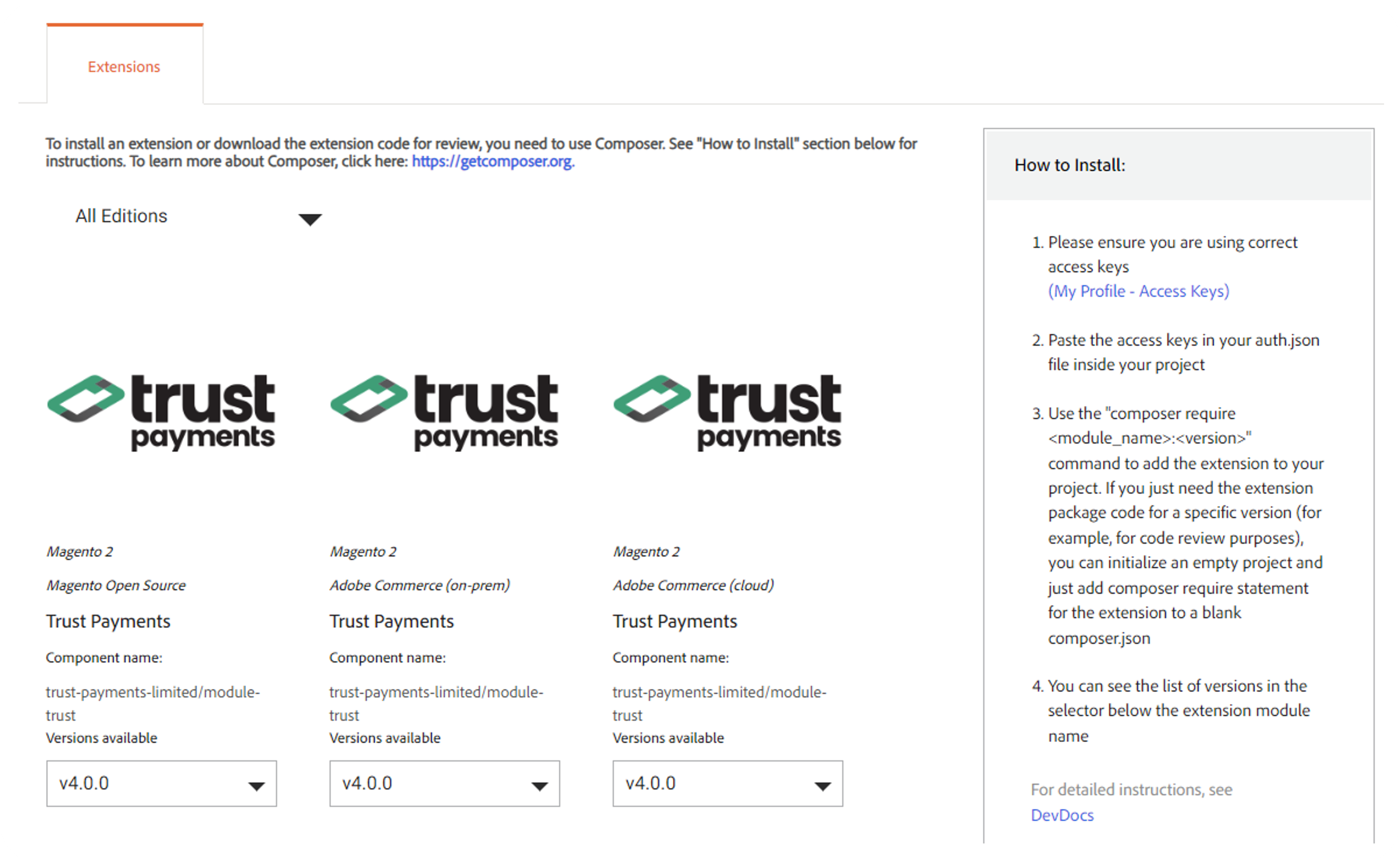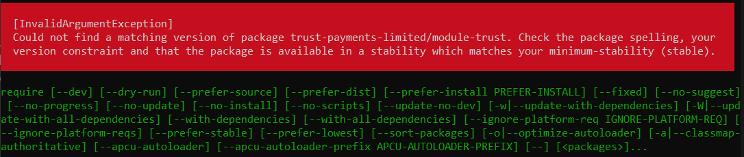 In the list returned, you should now see "securetrading/stpp_json" & "trust-payments-limited/module-trust" are displayed.