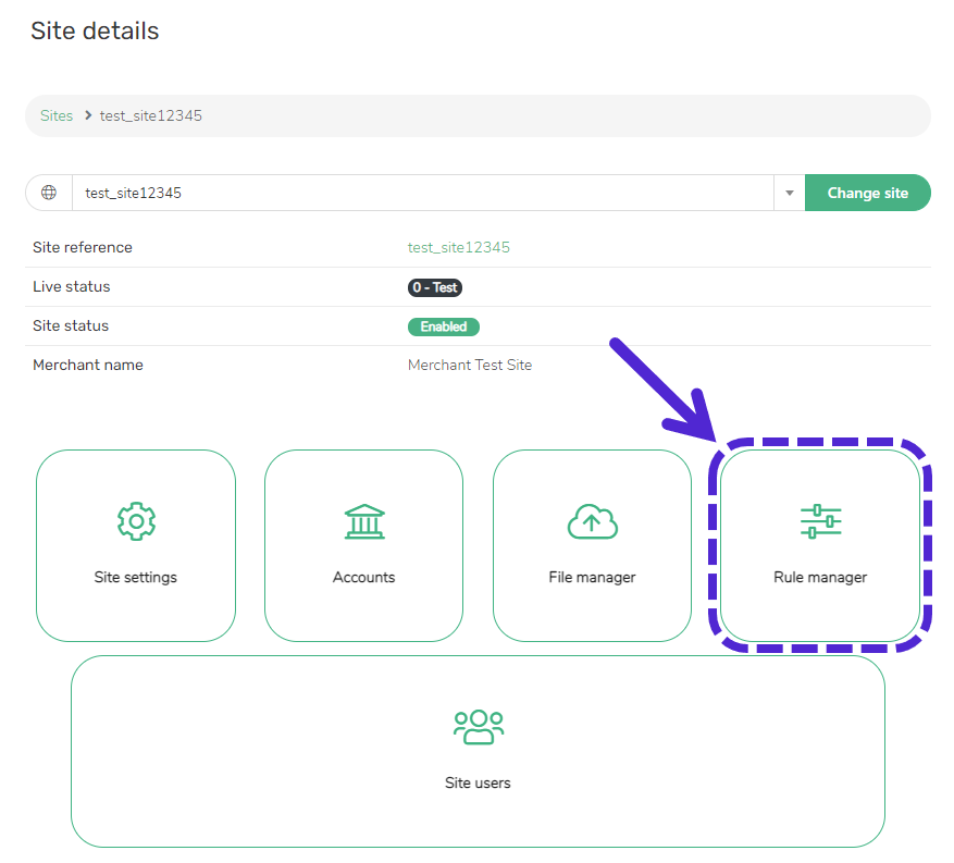 - Search for your Trust Payments sitereference using the search box found at the top of the page.