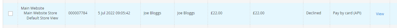 If your transaction has been declined, the Order status will update to “Declined” and a comment will be added to the order that is visible in the Store Admin.