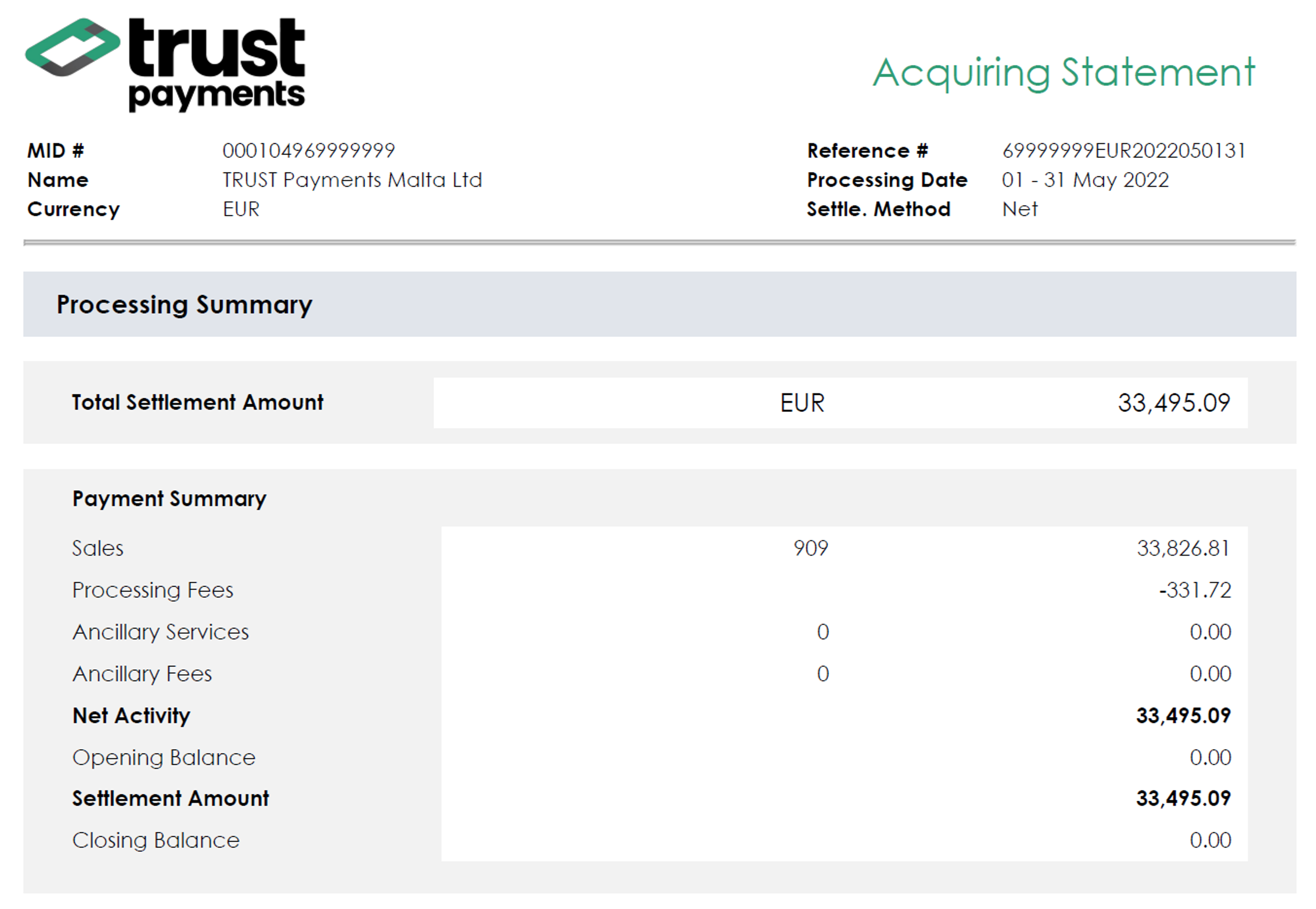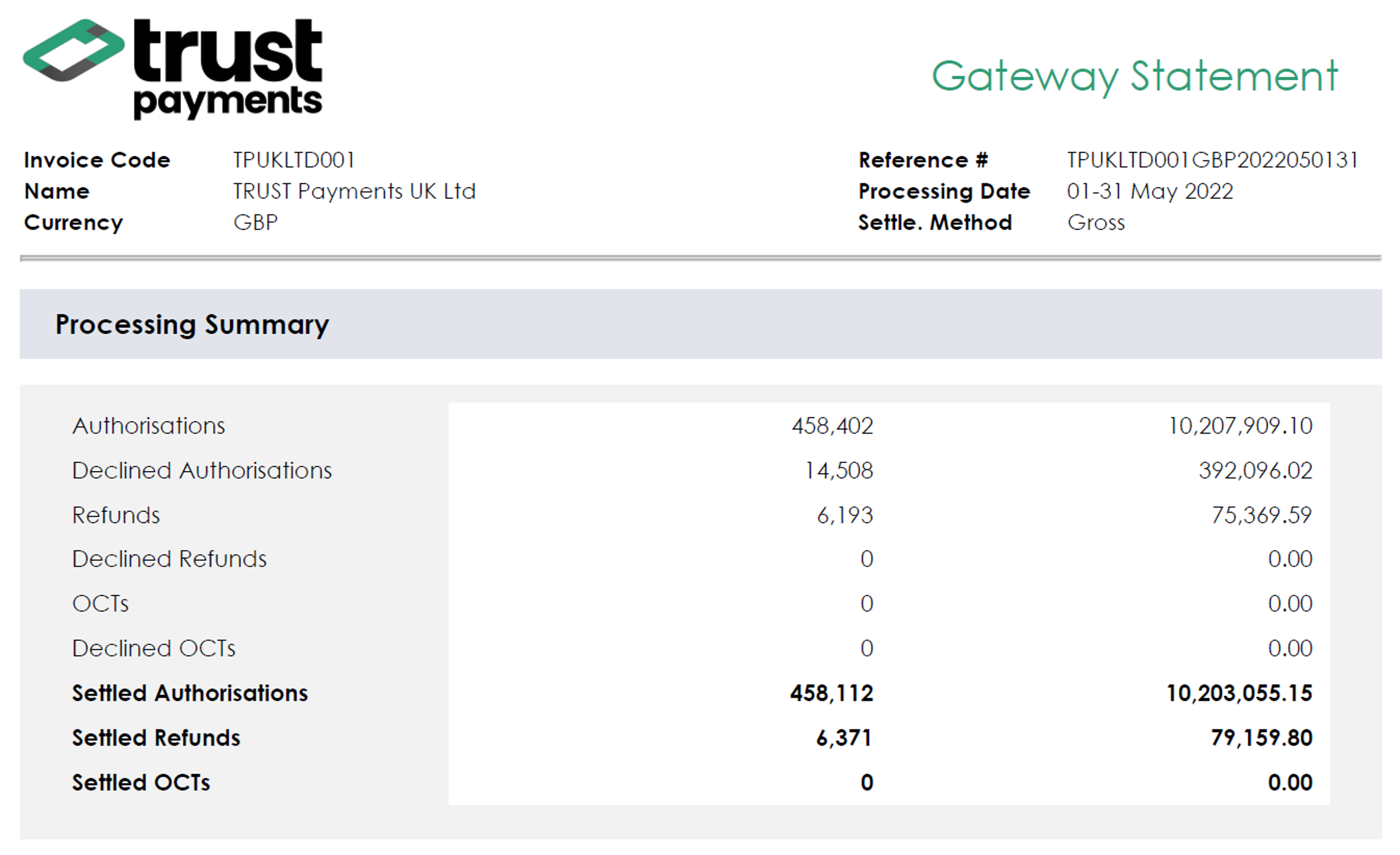 Trust Payments stellt regelmäßig Auszüge zur Verfügung, um Ihnen einen klaren Überblick über Ihre bearbeiteten Transaktionen zu geben. In diesen Auszügen werden die Anzahl und der Gesamtwert der bearbeiteten Anträge sowie die damit verbundenen Gebühren für Ihre Konten bei uns aufgeführt.