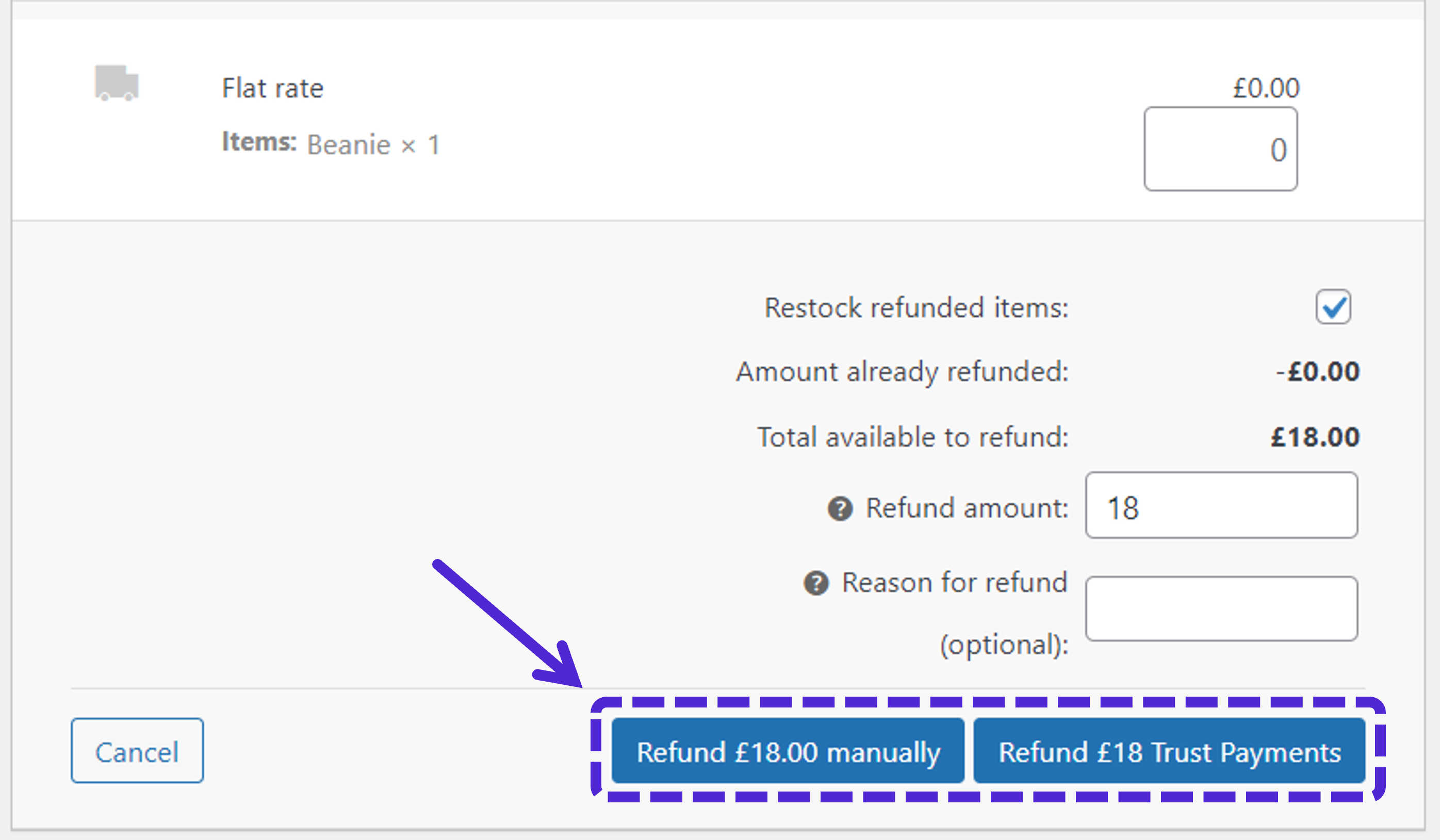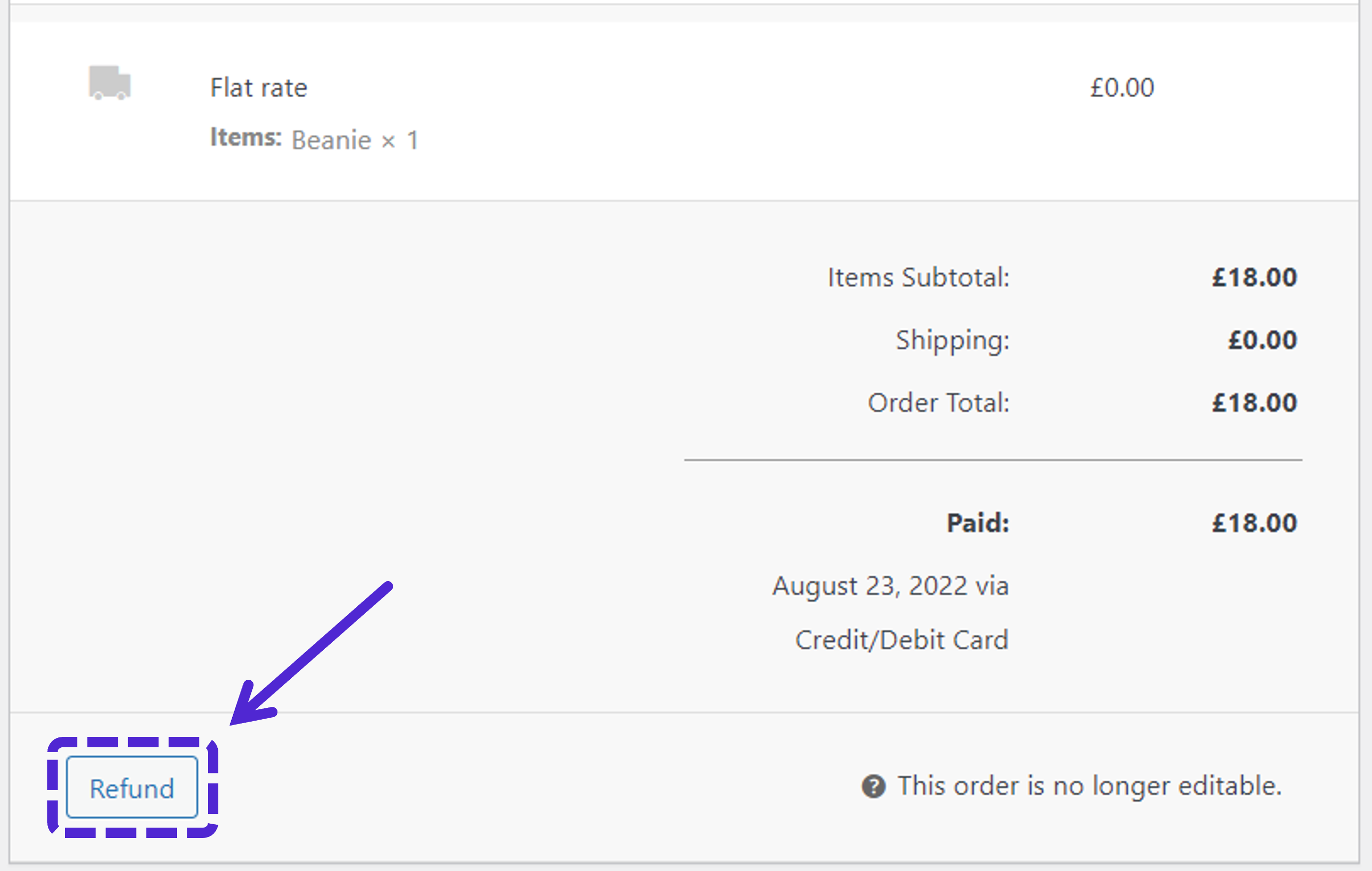 If you have the “Refunded Orders” email enabled in WooCommerce, then an automated email will be sent to the customer to inform them of the refund. If you entered a reason for the refund this will be included in the email.