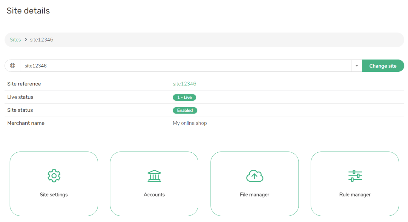 | Site status | Requests can only be processed using a site reference if it has been enabled.